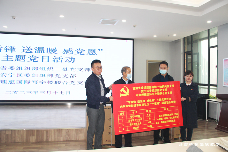 2023年3月17日,甘肅省委組織部組織一處黨支部、安寧區(qū)委組織部黨支部、甘肅中集集團黨委聯(lián)合開展“學雷鋒 送溫暖 感黨恩”主題黨日活動——向劉家堡街道幸福里社區(qū)“小蜜蜂”驛站聯(lián)合捐贈價值3萬余元的配套設施。